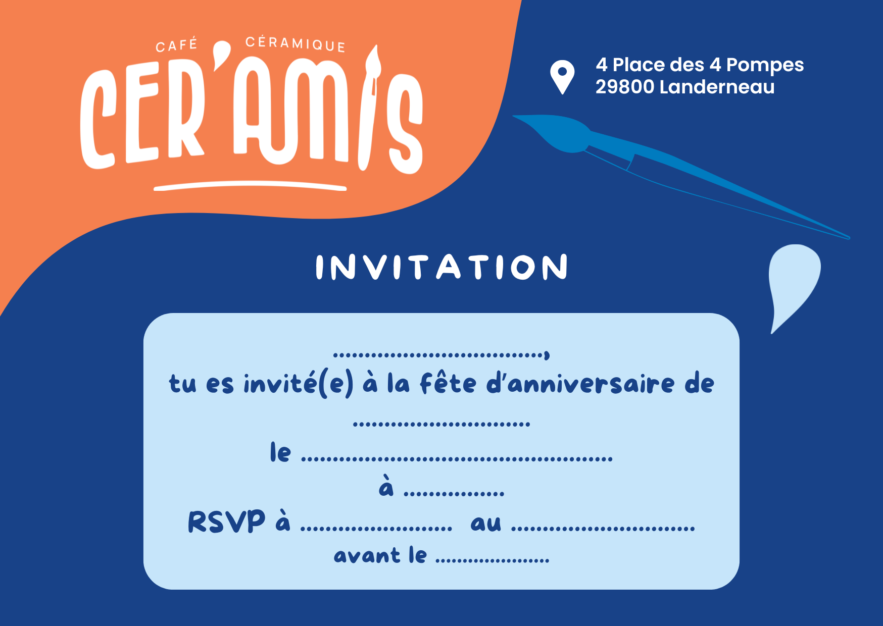 Fêtez un anniversaire pas comme les autres dans notre café céramique ! Entre amis ou en famille, profitez d’un moment créatif où chacun personnalise sa pièce. Ambiance chaleureuse, rires et souvenirs uniques garantis pour célébrer ce jour spécial de façon originale et inoubliable autour de la céramique.